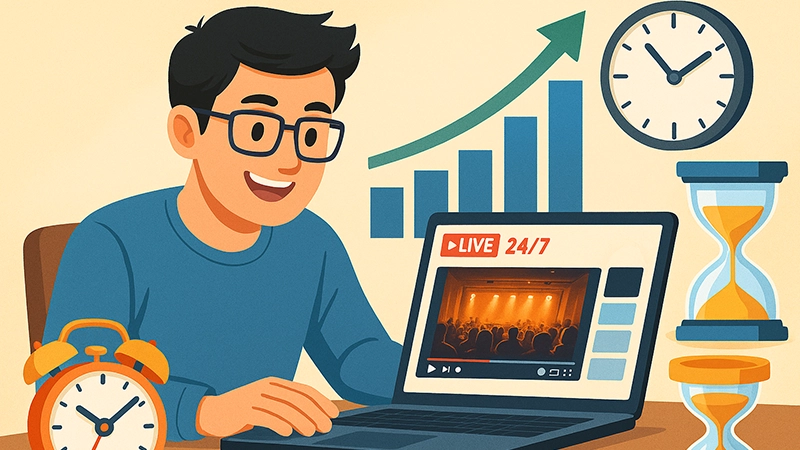 動画を24時間流し続けると聞くと、「手間がかかる」「現実的ではない」と感じる人も多いでしょう。実際、人力で配信を止めずに続けるのは難しく、コストや時間の面でも現実的ではありません。